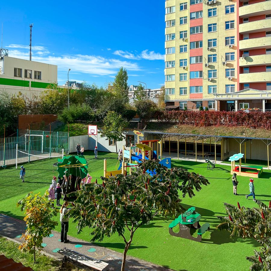 Школа має свою огороджену прилеглу територію з власними футбольними та баскетбольними майданчиками, обладнаними ігровими та спортивними зонами.